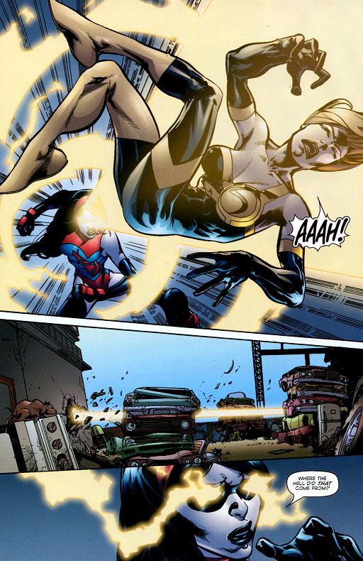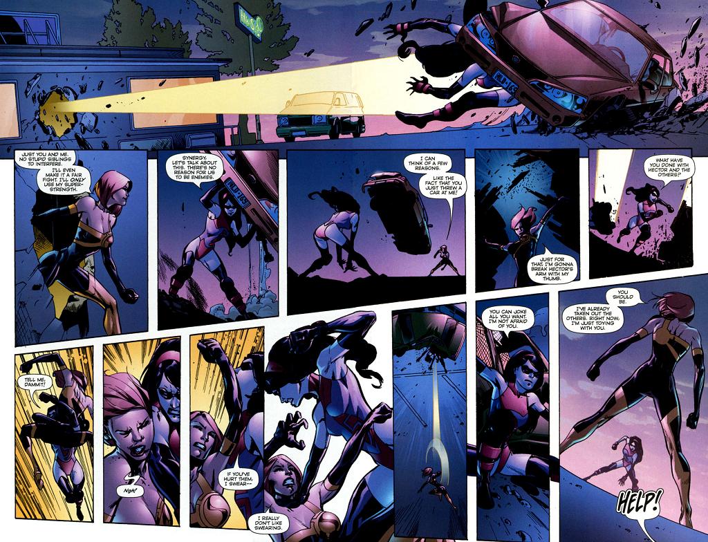 F.L.A.G.から盗んだ特殊な銃で、Dynamo 5を撃つSynergy。Dynamo 5は全員、特殊能力をなくしてしまいます。