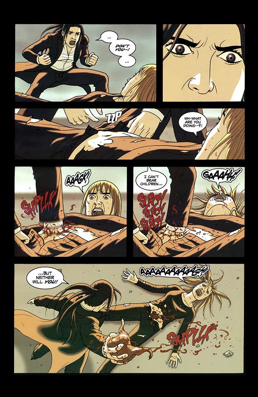 一対一の正面からの勝負では、やはりDaraに勝ち目はなさそうに見えた。Mariaの前に崩れ落ちるDara。「あなたは確かにとても強い。でも神じゃないないわ。神は破壊もするけど、創りもするするわ。だけどあなたは子供さえ産めないじゃない」Daraのその言葉に逆上したMariaは、Daraの身体から子宮を抉り出し踏み潰す。それをTV中継で見ていた人々はMariaの本性に気付き始める…。