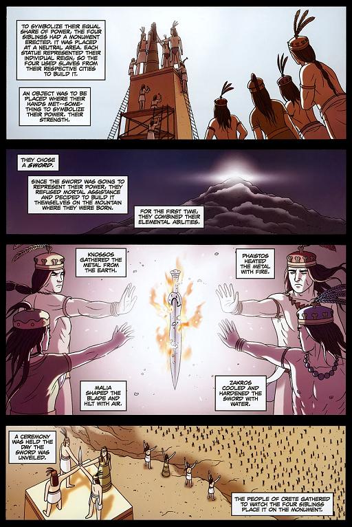 "Fire","Earth", "Air", "Water"をそれぞれ使う4人の兄弟がいて、剣はその4人がその特殊な力を合わせ作り上げた兄弟愛のシンボルというわけです。