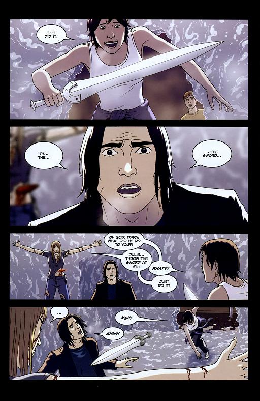 歩けるようになったDaraは、裏の湖まで逃げ、剣を湖に投げ捨てます。