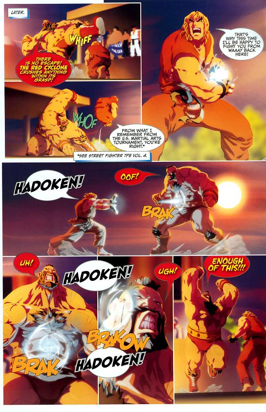 ディージェイに勝ったダルシムが謎の行動をとり姿を眩ませたため、ザンギエフに勝ったケンは不戦勝となり、ベガと対決。これに勝利したケンは、いち早くバイソンと対戦する権利を得ますが、もともとベガを倒すのが目的だったケンはここでリタイヤを決意します。