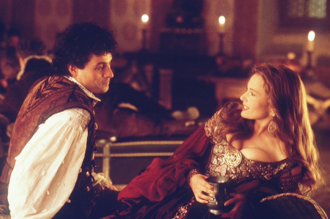 マルコのいとこマフィオ(オリバー・プラット)は、ベロニカに反感を持ち総督の面前で彼女を軽蔑して詩を笑いものにする。剣術も習得しているベロニカはマフィオの挑発に乗って剣を抜いて決闘をはじめる。即興詩をお互いに交わしながら、男性に負けない剣さばきのベロニカだったが、彼女は軽い傷を負う。手当てをしたのはマルコだった。やさしさに触れて、ベロニカは彼への愛と思いが堰を切ったようにあふれ、二人は激しくくちづけを交わしベッドを共にしていた。