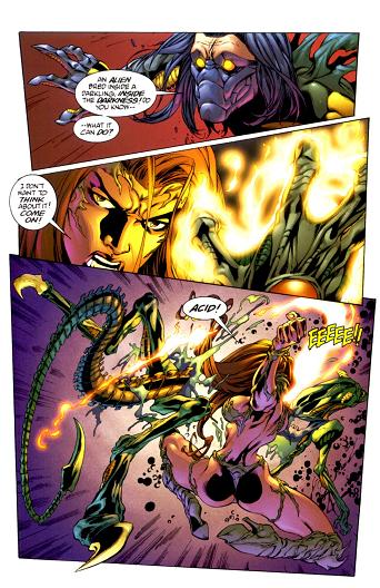 Sara(Witchblade)とJackey(Darkness)が目覚めた場所は、地球軌道上を回る宇宙船の中だった。捕えられていたのだ。宇宙船の中は、エイリアンたちが徘徊している危険な場所だった。そこに女性のプレデターが現れ…。