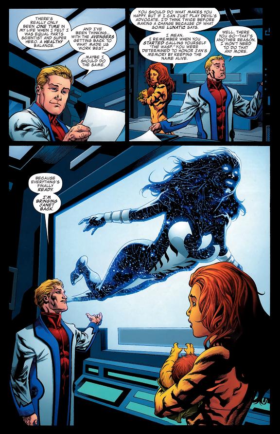 アンダースペース・ディメンションを彷徨うJanet(Wasp)の魂。それらを統合しJanetを生き返らせる決心をするPym。だがそんな折、護送中のAbsorbing Manが脱走する。Pymは彼と戦い、何かを気づかされたようだが…。