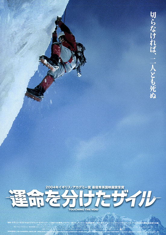 視界ゼロ、体感温度マイナス60度。過酷な状況の中で二人の間をつなぐのは1本のザイル(命綱)だけ。はるか下方には大きく口を開けたクレバス。ザイルを切らなければ、二人とも死んでしまう─究極の選択を突きつけられたサイモンは、迷いを断つようにしてザイルを切った。