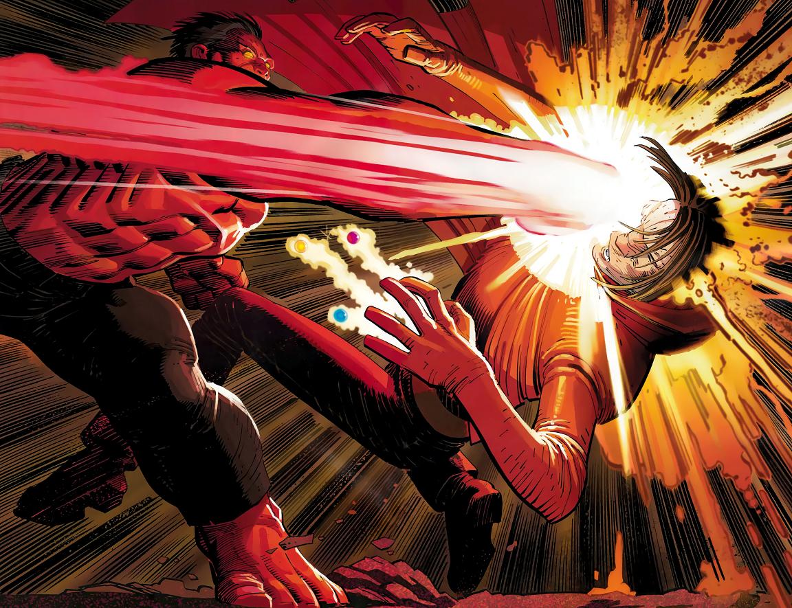 Red GemのPowerを試したいThe Hoodは、Red Hulkに襲い掛かり、滅多打ちにします。