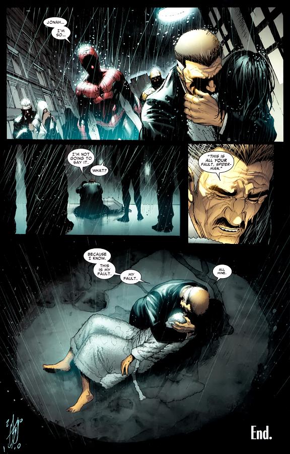 「ねえ、聞いて。怒らないで、Jonah…。こうなったことで、誰かを責めたりしないで。Spider-SlayersもSpider-Manも。Smytheもよ。もうこれ以上、恨みなんかであなたの人生を無駄にしないで。愛してる…」