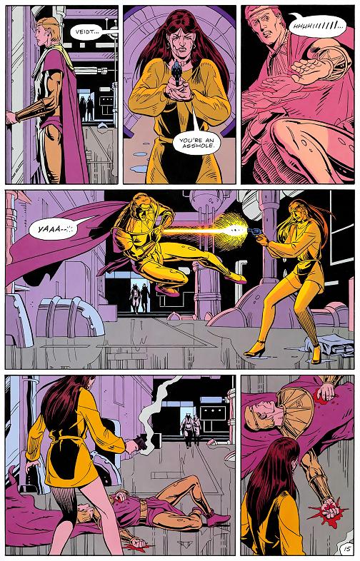 Blakeはこの計画に接近しすぎたために、Veidt自身の手によって殺害されたのだった。Veidtは計画の秘密を守るために、計画の全貌を知らない多数の協力者や、腹心の部下をも抹殺していた。Veidt、Dreiberg、Juspeczyk、Kovacs、Ostermanのみが、総ての真実を知っている。Dreiberg、Juspeczyk、Ostermanは、Veidtの計画を暴露して米ソ間の緊張が再び高まることを懸念し、世界の平和を護るためとしてこの事実を隠匿する事に同意する。しかし、Kovacsは「世界が滅んでも絶対に妥協はしない」とこれを拒絶。Ostermanによって消滅させられた。そして「最後には私が正しかったのだ」と言うVeidtに対して「最後など存在しない」と言い残し、Ostermanは新たに価値を見出した生命を作るべく、永久に地球を去る。