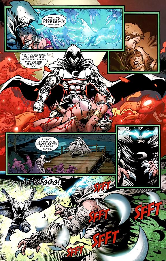 Khonshuと話し、Sapphire Crescentのありかを知ったMoon Knightは目的地へと向かうが、Shadow Knightが跡をつけていた。かくして兄弟でのCrescentの争奪戦が始まり、戦いは激しさを増し、一般市民にまで被害が及び始めた…。