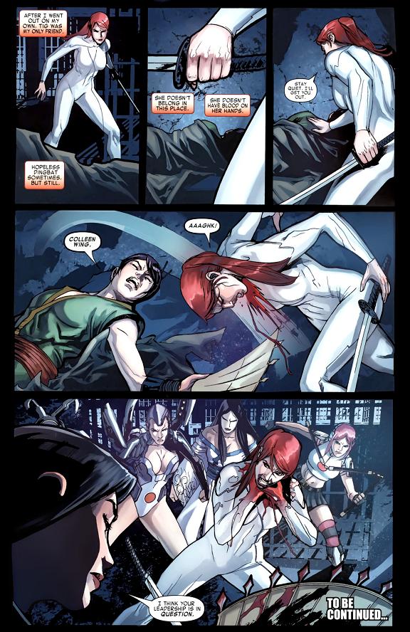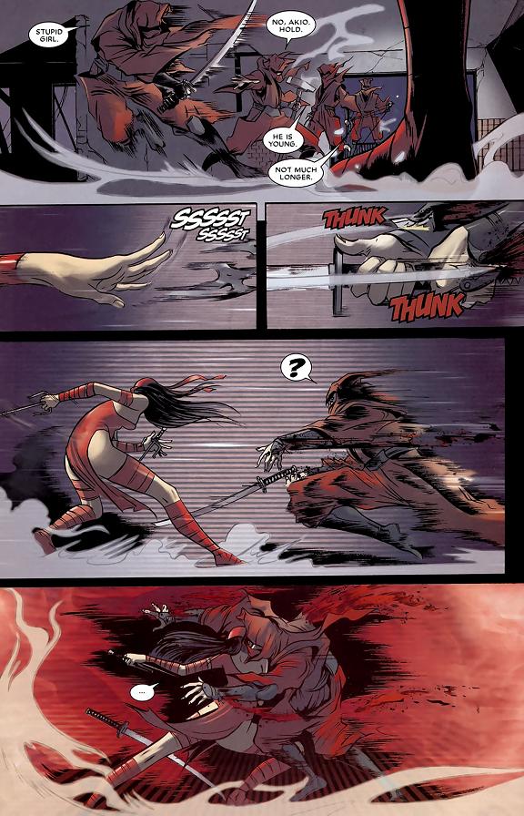 Elektraの前に現れる忍者たち。彼らはDaredevilからのメッセージと伝えに来たのだった。The Handの前リーダーの存在をもはや許すことは出来ない。夜明け前までにアメリカを去れ、ということだった。Elektraは忍者たちを殺害することで返事としたのだった…。
