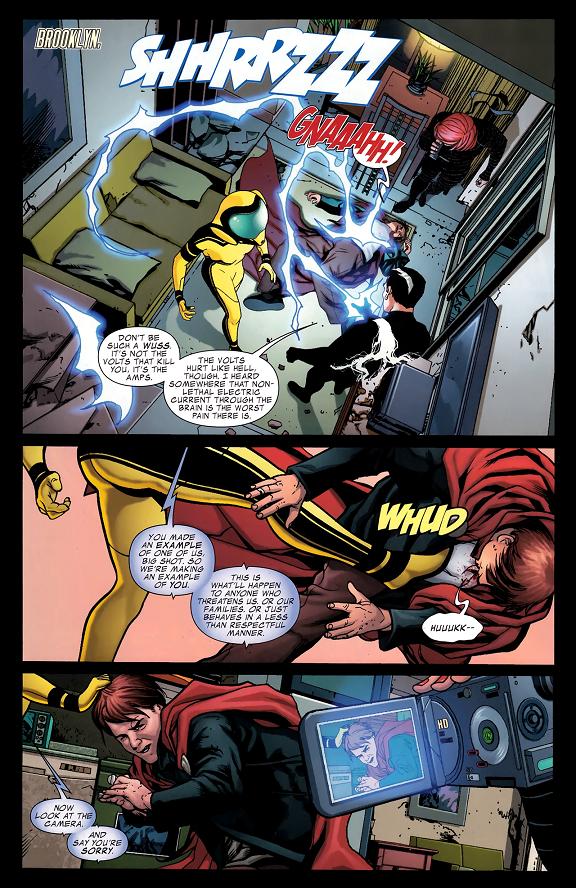 HoodがTigraを襲撃している動画がインターネット上に出回った。これを見て義憤に駆られたStriker, Veil, Hazmatの3人は、Hoodを追跡し同じ目にあわせ、これをビデオに撮りネットに流した。これを知ったTigraは3人に、Avengers Academyの退学を言い渡したのだった…。