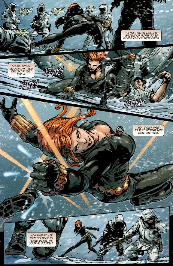 Potterを狙撃した犯人がLady Bullseyeであることを突き止めたNatasha(Black Widow)は、Lady Bullseyeを生きたまま埋葬という状況に持ち込む。しかし、Captain Americaに裏切られたNatashaは、肉の冷凍貯蔵庫に監禁されてしまうのだった…。