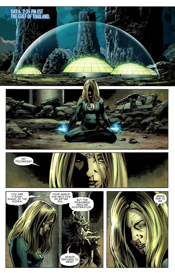 Namorは最初から話し合いをする気はなく、戦闘へと雪崩れ込み、必死でそれを阻止しようとするSueですが…。