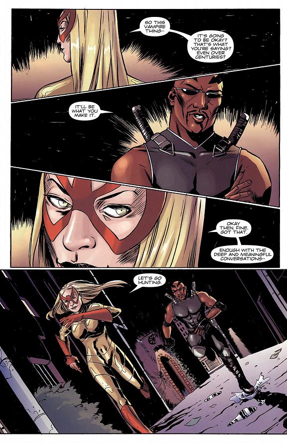 吸血鬼に咬まれたことと、Original Human Torchに輸血してもらったことにより、スーパースピードの能力と永遠の命を持ったLady Jacqueline FalsworthことSpitfire。彼女は現在、イギリスのMI: 13に所属し、またBladeと恋人の関係にある。その恋人Bladeと共にニューヨークへ渡った彼女の目的は、第二次世界大戦のときからの知人Bertram-Hayesを倒すことだった…。