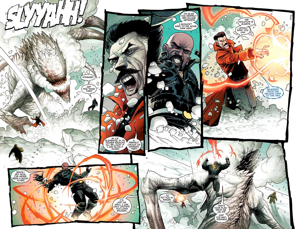 で、沼へと連れ戻しに来たのはJennifer Kaleという魔法使い。Dr. Strangeの仲間だとか。Man-ThingがThunderboltsに利用されていると思っていたようです。